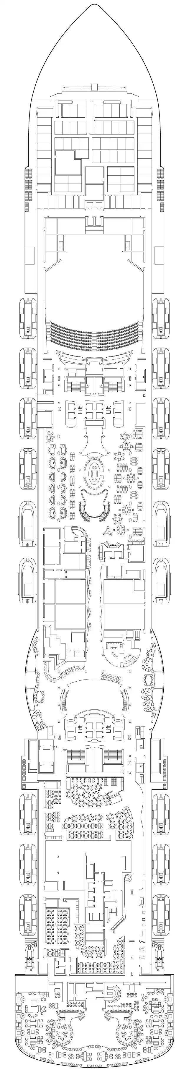 Surface area approximately 14 m², deck 5-10 Bathroom with shower, beauty corner with hairdryer Comfortable double bed or two single beds (on request)* Interactive TV, air conditioning, telephone, Wi-Fi connection (for a fee), safe and minibar Can accommodate up to 5 people *Some cabins for guests with disabilities or reduced mobility have two single beds that cannot be converted into a double bed.