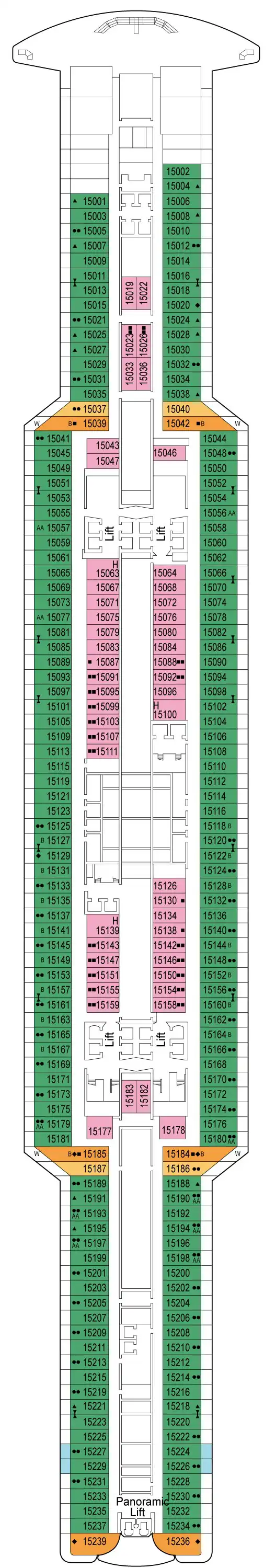 *Some cabins have a metal front balcony instead of glass.