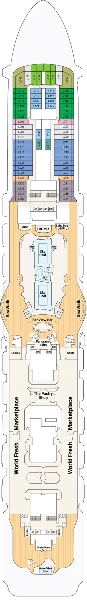 Approximately 484 to 527 sq. ft. including balcony, the Vista Suite features a spacious cabin and aft-facing balcony. Enjoy exclusive suite-only upgrades and benefits.